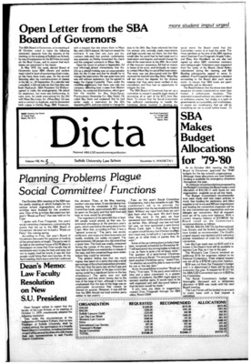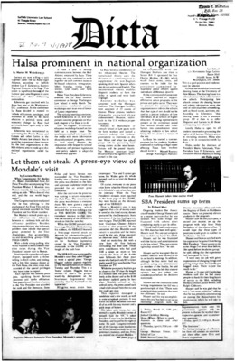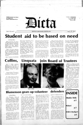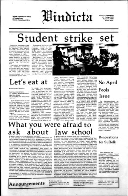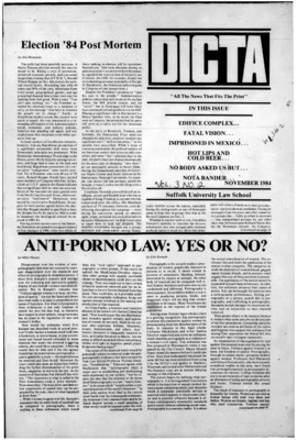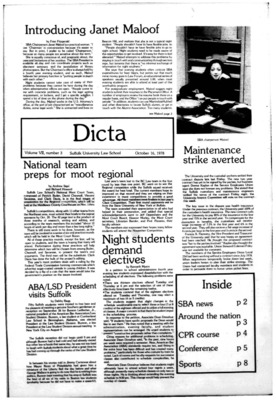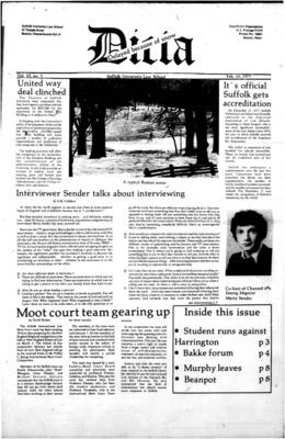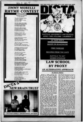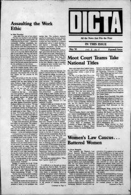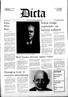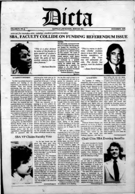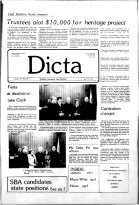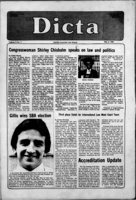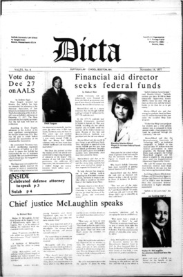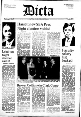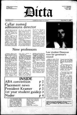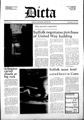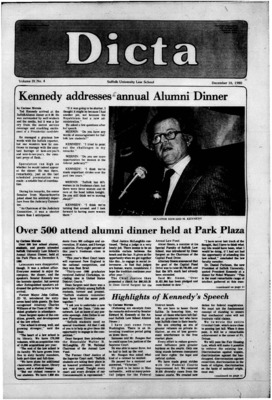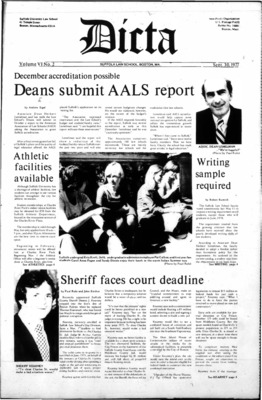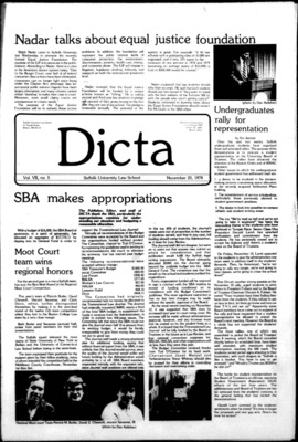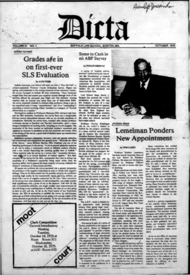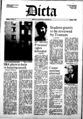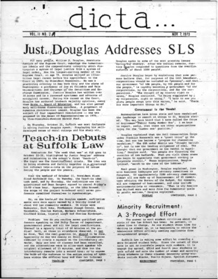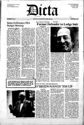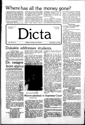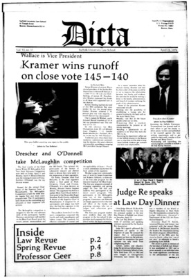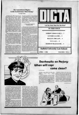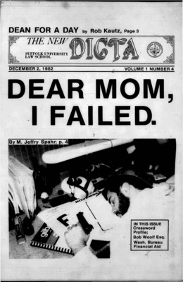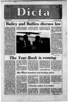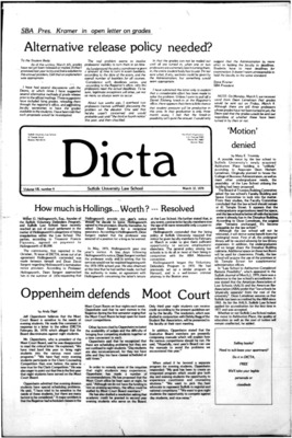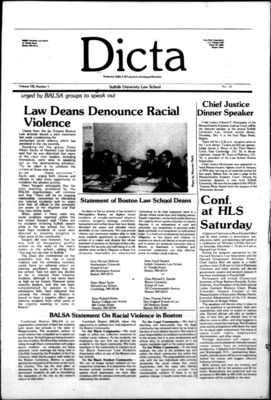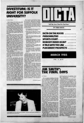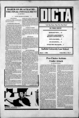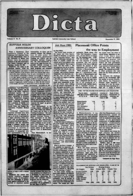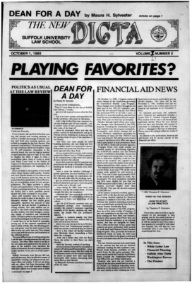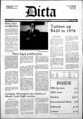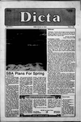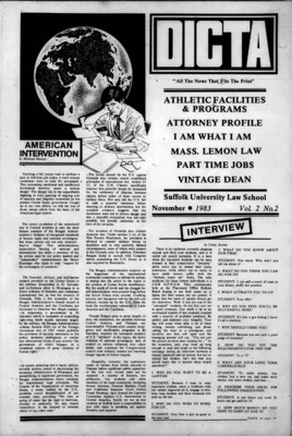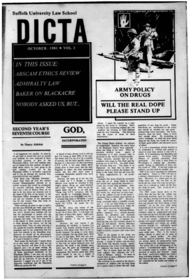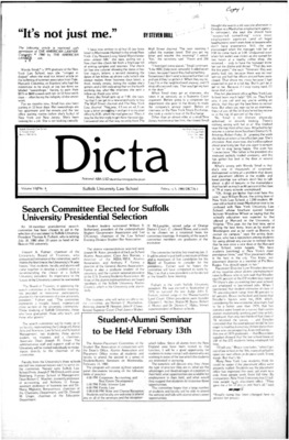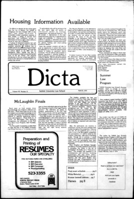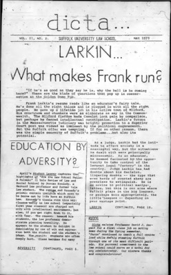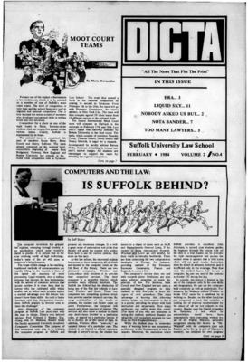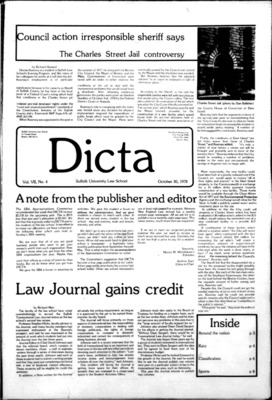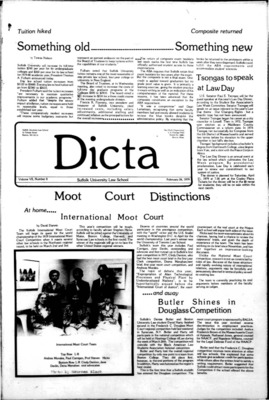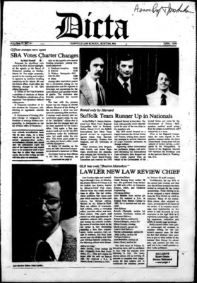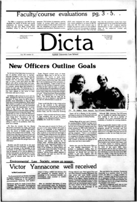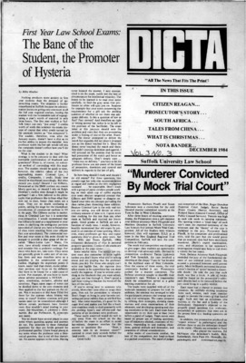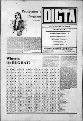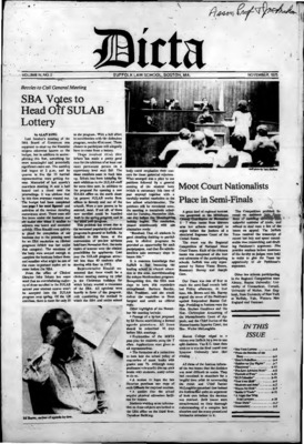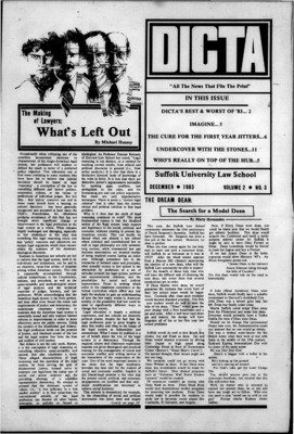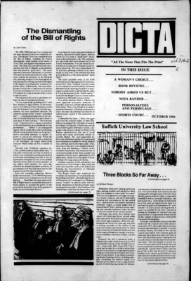 DICTA is the student newspaper of Suffolk University Law School. This collection represents a small selection of the paper's full print run; paper copies of the full run of issues are available at the Moakley Archive.