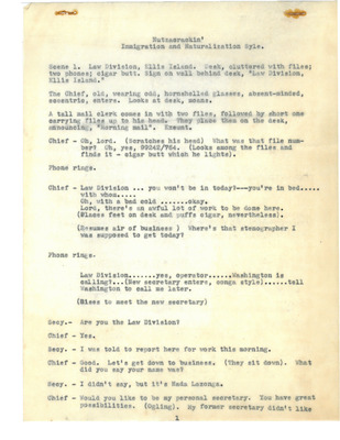 Nutzacrackin' Immigration and Naturalization Syle [sic?], play, circa 1930s