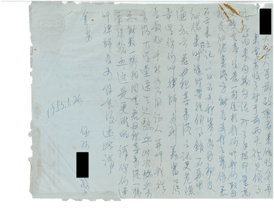 Two letters from a man in China to his grandfather and uncle regarding his home situation and asking for increased financial assistance (includes an English translation), 1/26/1953