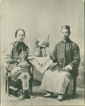 Formal portrait, presumed to be Alice Dow and Hom Soon Dow dressed in traditional Chinese attire, photgraph, circa 1900s