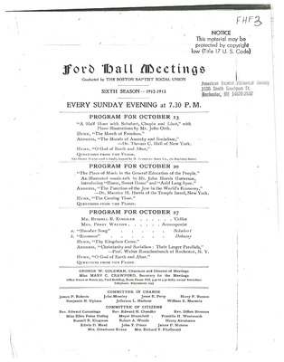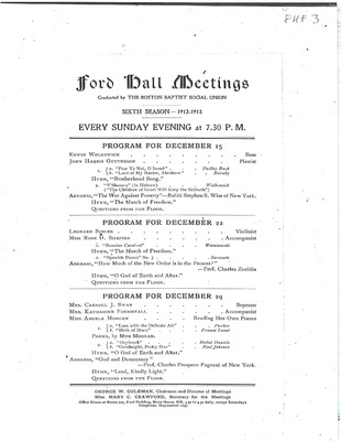 The section includes digitized season programs, newsletters, and booklets that document the history of the Ford Hall Forum .