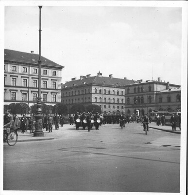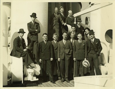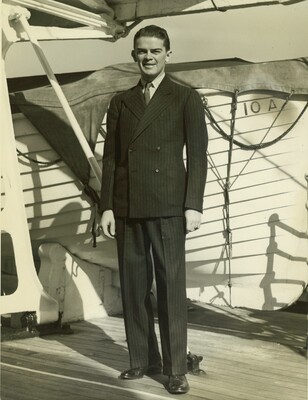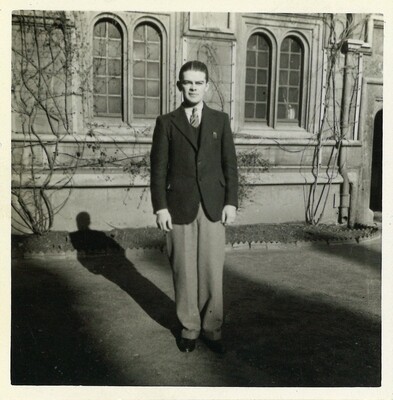 The following digitized images from the Thomas F. Lambert Jr. Papers document aspects of Lambert’s life and career. The photographs include headshots, snapshots from his time studying at Oxford in the 1930s, as well as his travels around Europe. While traveling in Germany in 1937, he witnessed parades and public events held by the Nazi Party, including the visit of Italian leader Benito Mussolini. There are also photographs from Lambert’s time as a prosecutor in the 1946 trial of German Nazi Party official Martin Bormann at the Nuremberg International Military Tribunal.