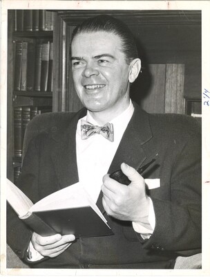 • Photograph of Thomas F. Lambert posed with a book and pipe, circa 1950s by Unknown