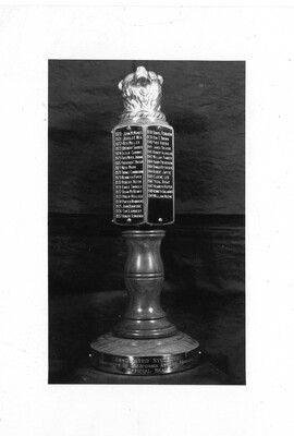 Photograph of the UCLA Student Counsel Presidents trophy, 1949