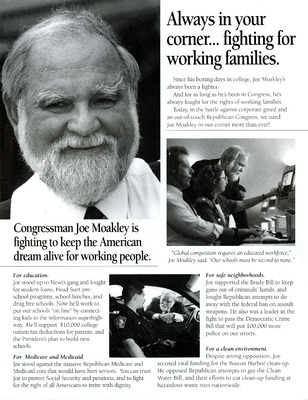 Campaign mailing tri-fold: "Joe Moakley. Democrat. He fights for us." circa 2000
