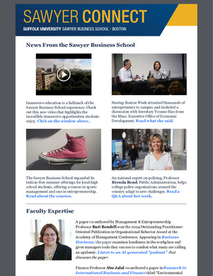 Browse news from the Sawyer Business School including faculty achievements, student and alumni accomplishments, school rankings, and significant events.